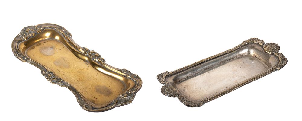 cm 25x10; 25x10,5 Uno con bordo mistilineo e decoro floreale a rilievo, l'altro rettangolare con decoro unghiato e floreale a rilievo ai lati