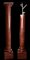 Coppia di colonne in rosso antico con ramo di sambuco in cima in metallo argentato