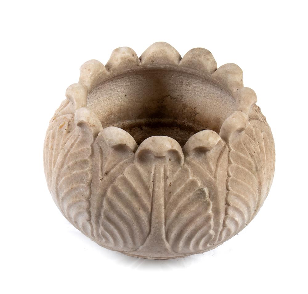 Vaso in marmo bianco statuario decorato a foglie d'acanto
