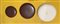 Lotto di tre svuotatasche in pelle, due color cuoio, un bianco con profilo azzurro