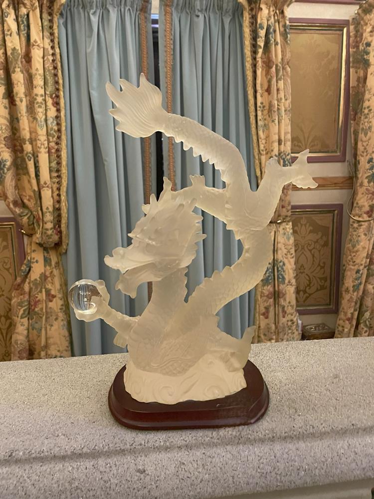 Sculturina raffigurante dragone cinese in resina realizzato ad imitazione del vetro
