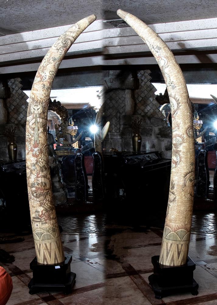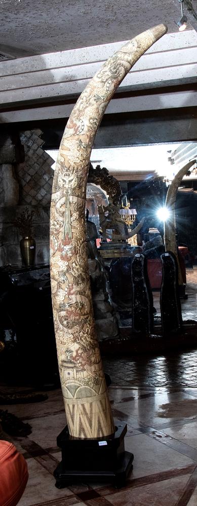 altezza cm 230 Decorazione lungo tutto la zanna con dragoni, paesaggio e elementi decorativi orientali