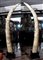 Coppia di grandi repliche di zanne con base in legno
