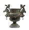Coppia di grandi vasi bronzei con manici a guisa di leone sormontati da foglie di acanto e putti intenti a poggiare la testa sulle mani, raccordati tra loro da festoni stile impero.