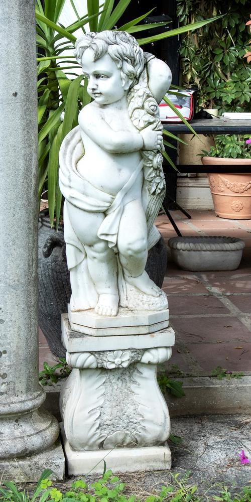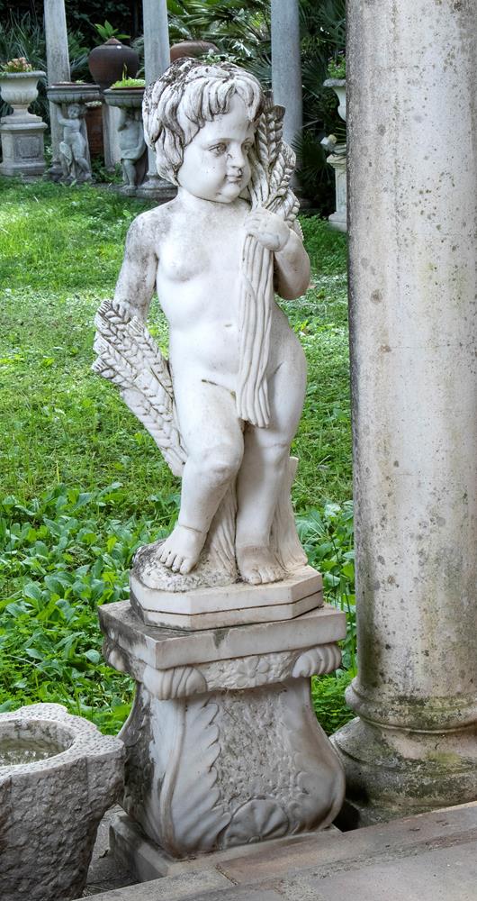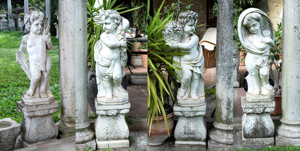 Lotto di 4 sculture in marmo bianco statuario raffiguranti putti allegorie delle 4 stagioni