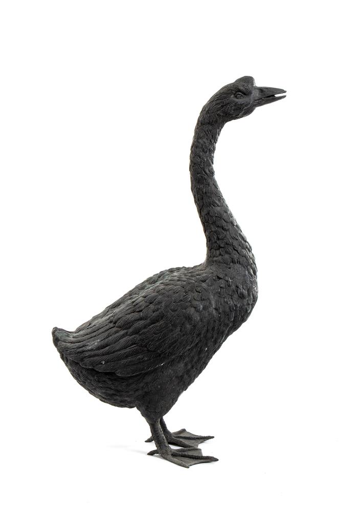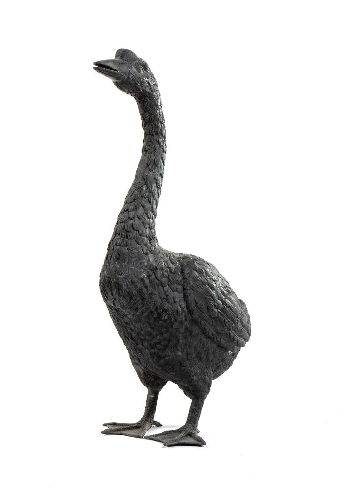Scultura da giardino rappresentante grande oca in bronzo di alta qualità finemente lavorato nei minimi particolari