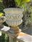 Lotto di tre vasi in polvere di marmo e cemento realizzati con ricca decorazione a ghirlanda floreale