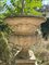 Vaso a cratere da esterno con coppia di mascheroni e decorazione a rilievo di festoni
