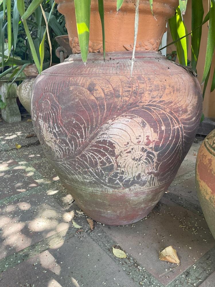 Grande vaso in terracotta con decoro inciso a foglie di palma