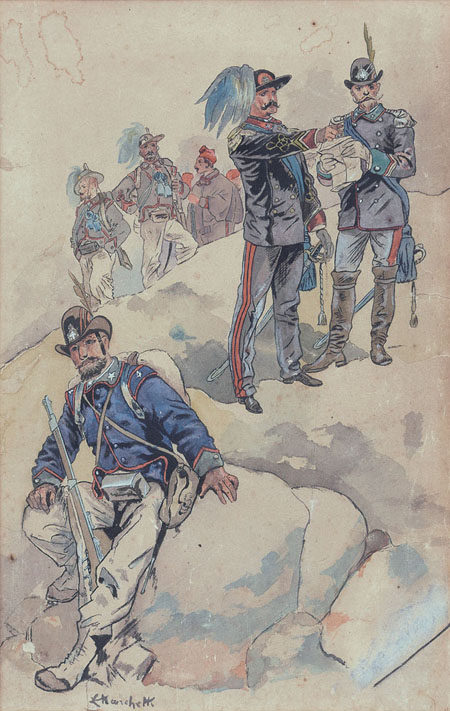 MARCHETTI LUDOVICO Roma 10/05/1853 - Parigi 20/06/1909Bersaglieriacquerello...