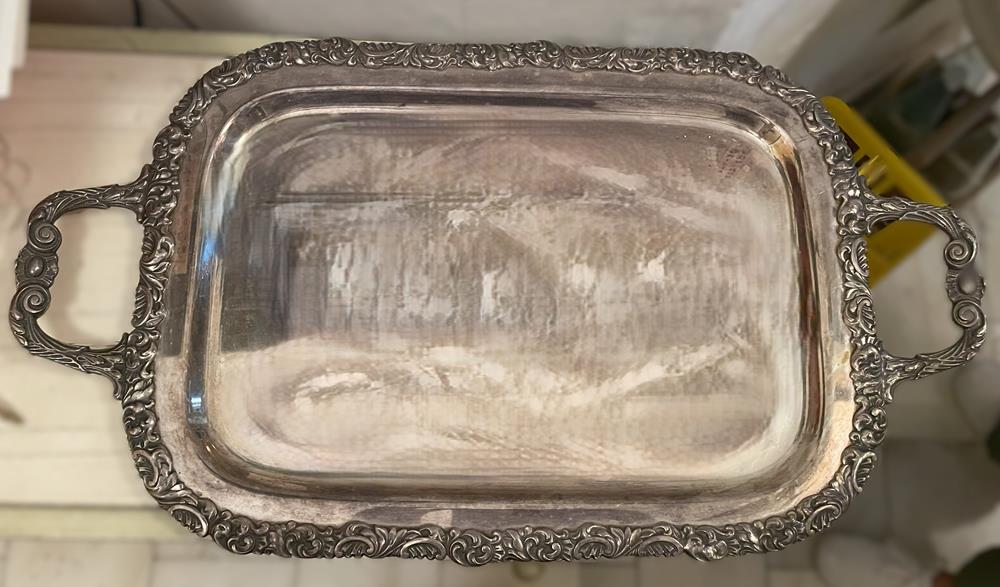Vassoio rettangolare con bordo a volute con manici. Punzone WMF Hotel Germany