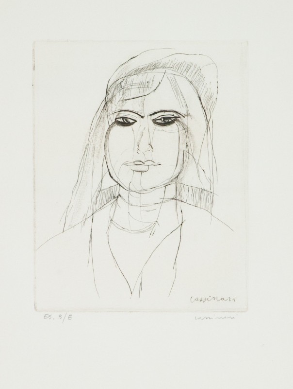 Bruno Cassinari (Piacenza 1912 - Milano 1992) FIGURA Acquaforte cm. 24x19, su carta cm. 38x28, es. B/E Firma in basso a destra, tiratura in basso a sinistra.