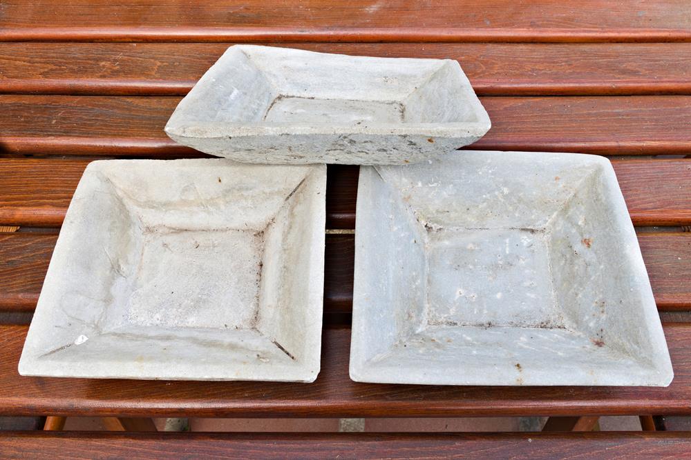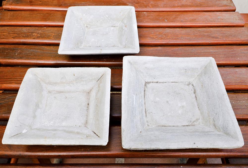Lotto di tre ciotole quadrate in marmo