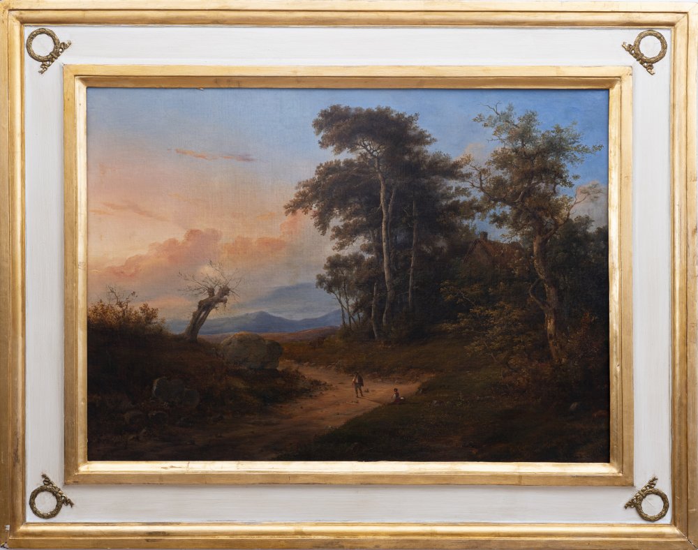 Massimo D'Azeglio Torino 1798 - 1866 Paesaggio con figure Olio su tela cm 78x107