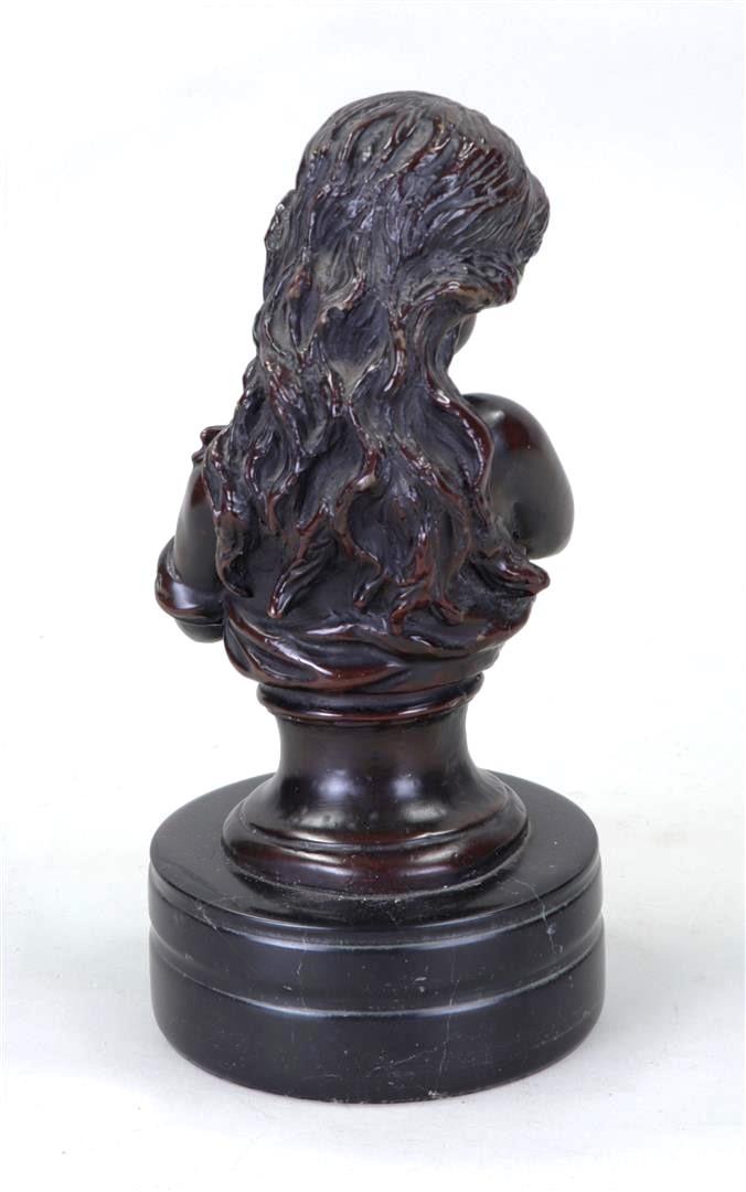 A bronze bust of a young girl with bunch of grapes mounted on a honed stone...