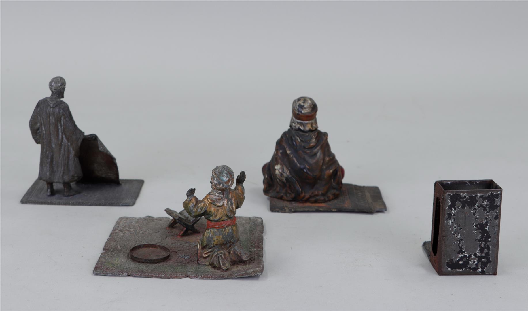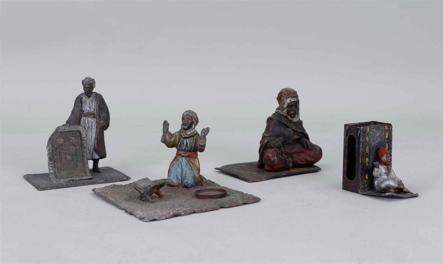 A lot of four cold painted metal figures in Bergmann style.