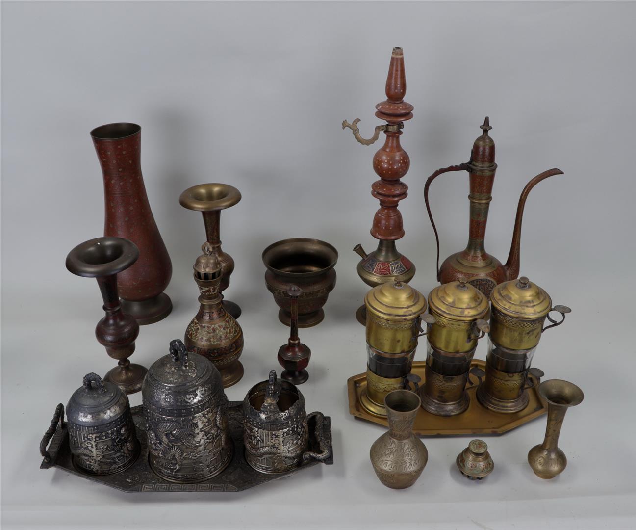A large lot of various Oriental and Asian objects in copper, including...
