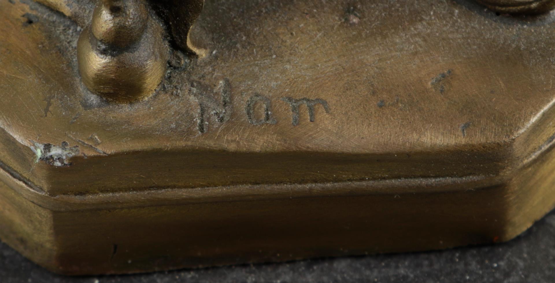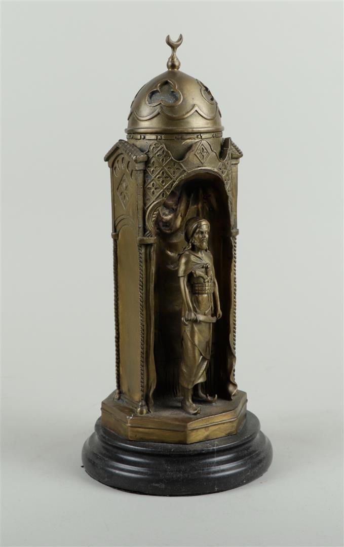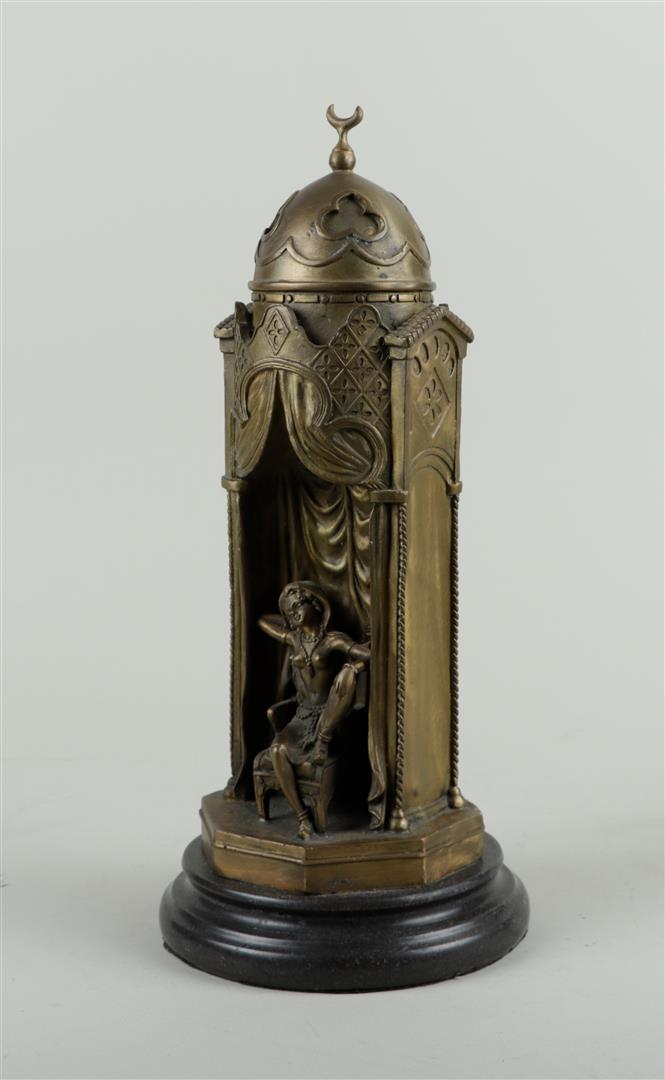 A bronze statue of a lady and an Arab in a dome tower, in Bergman style.H. 34...