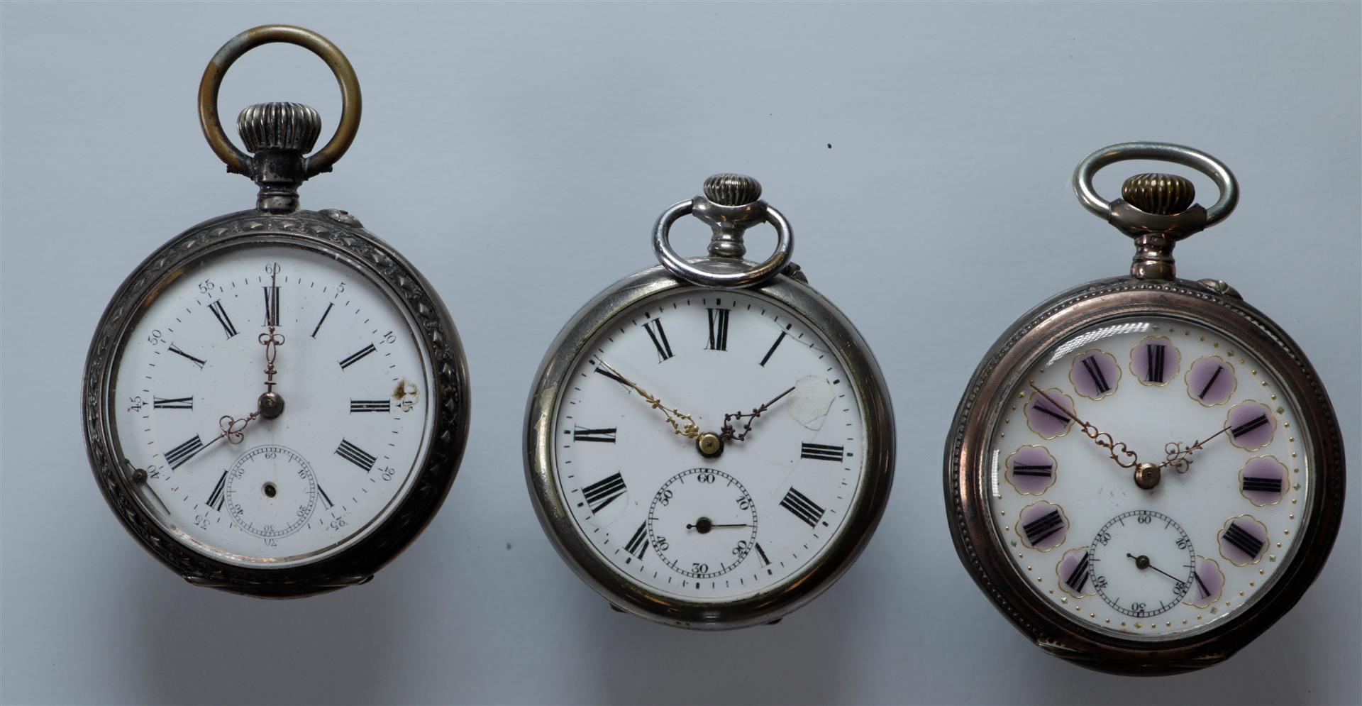 Lot with steel and silver pocket watches in various conditions - gross weight: 621.8 grams.