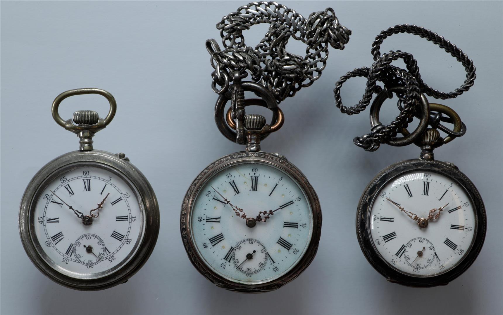 Lot with steel and silver pocket watches in various conditions - gross weight: 210 grams.