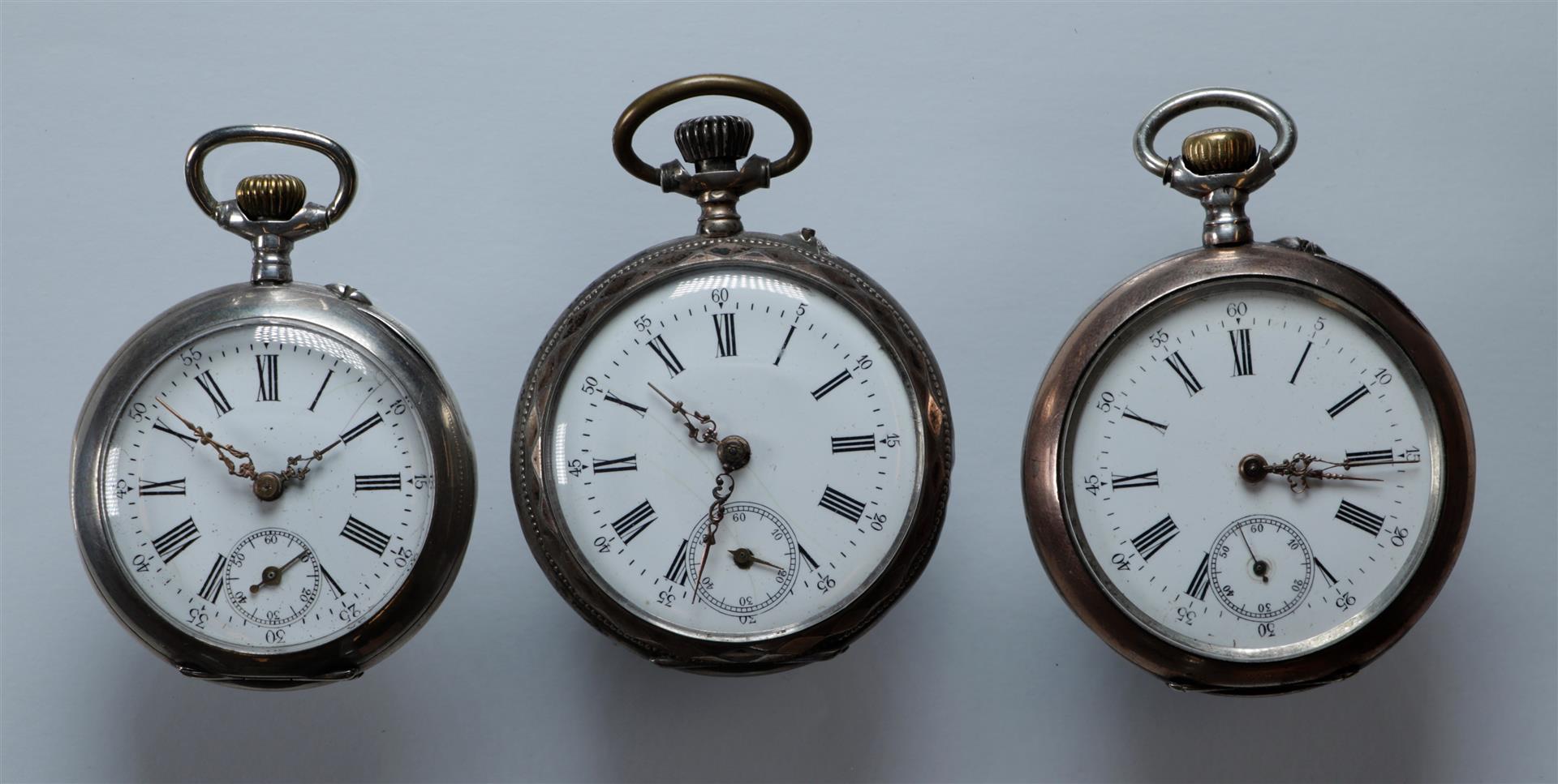 Lot with steel and silver pocket watches in various conditions - gross weight: 190 grams.