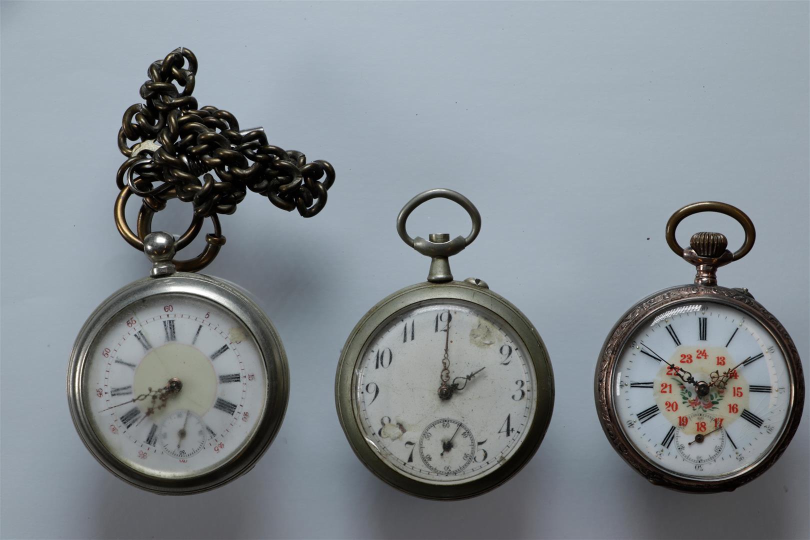 Lot with steel and silver pocket watches in various conditions - gross weight: 621.8 grams.