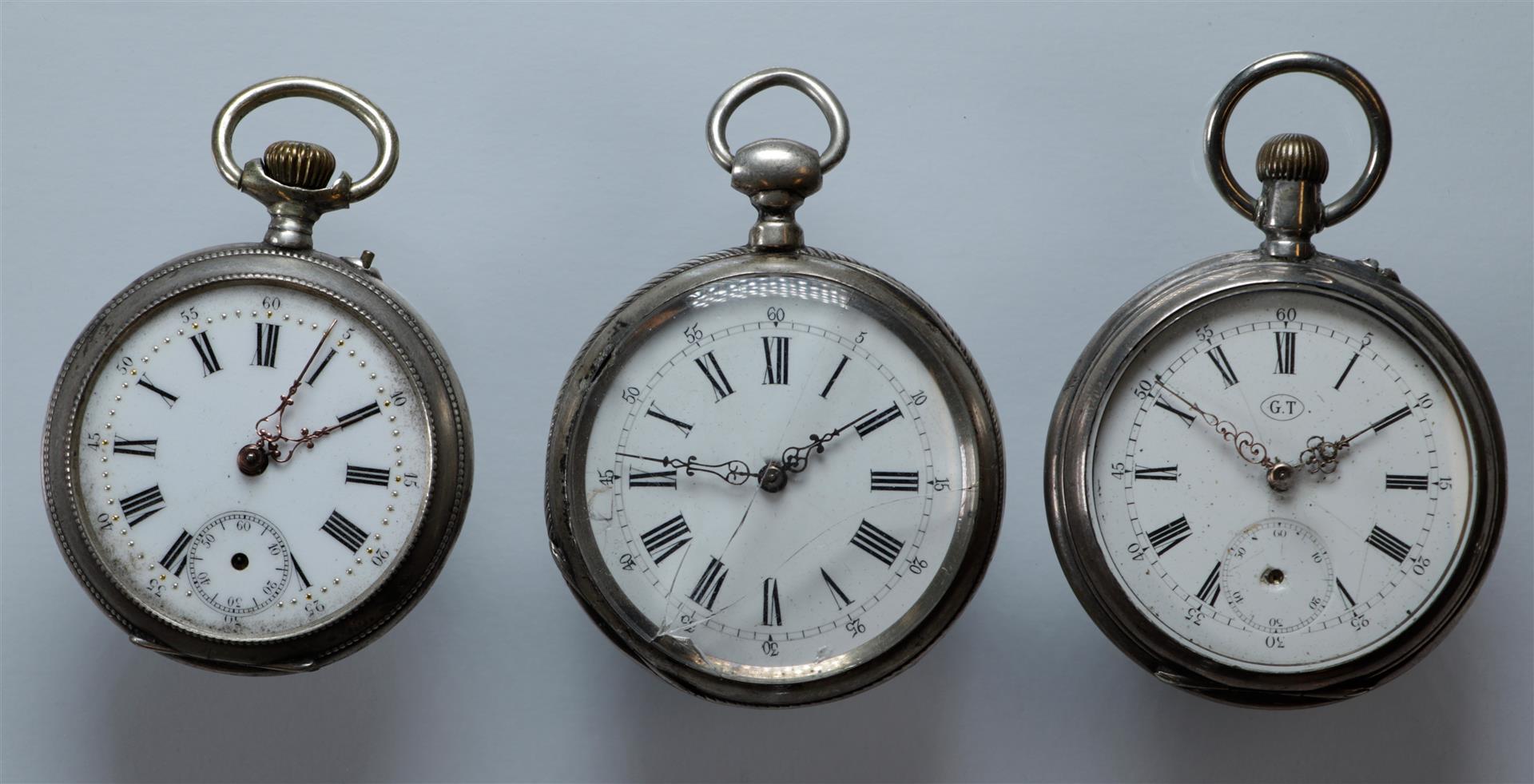 Lot with steel and silver pocket watches in various conditions - gross weight: 213 grams.