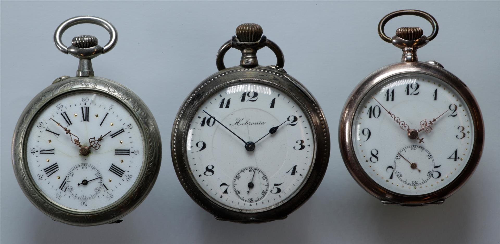 Lot with steel and silver pocket watches in various conditions - gross weight: 193 grams.
