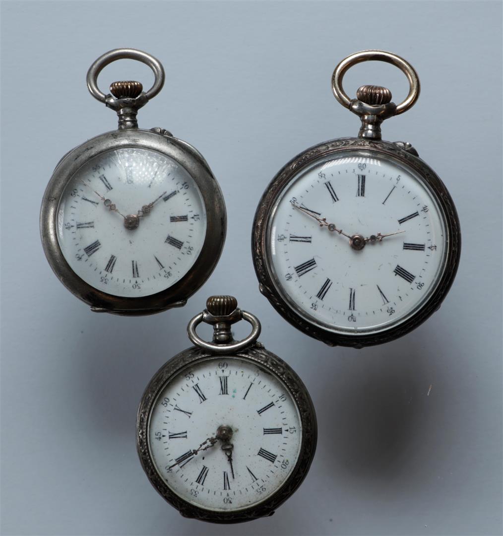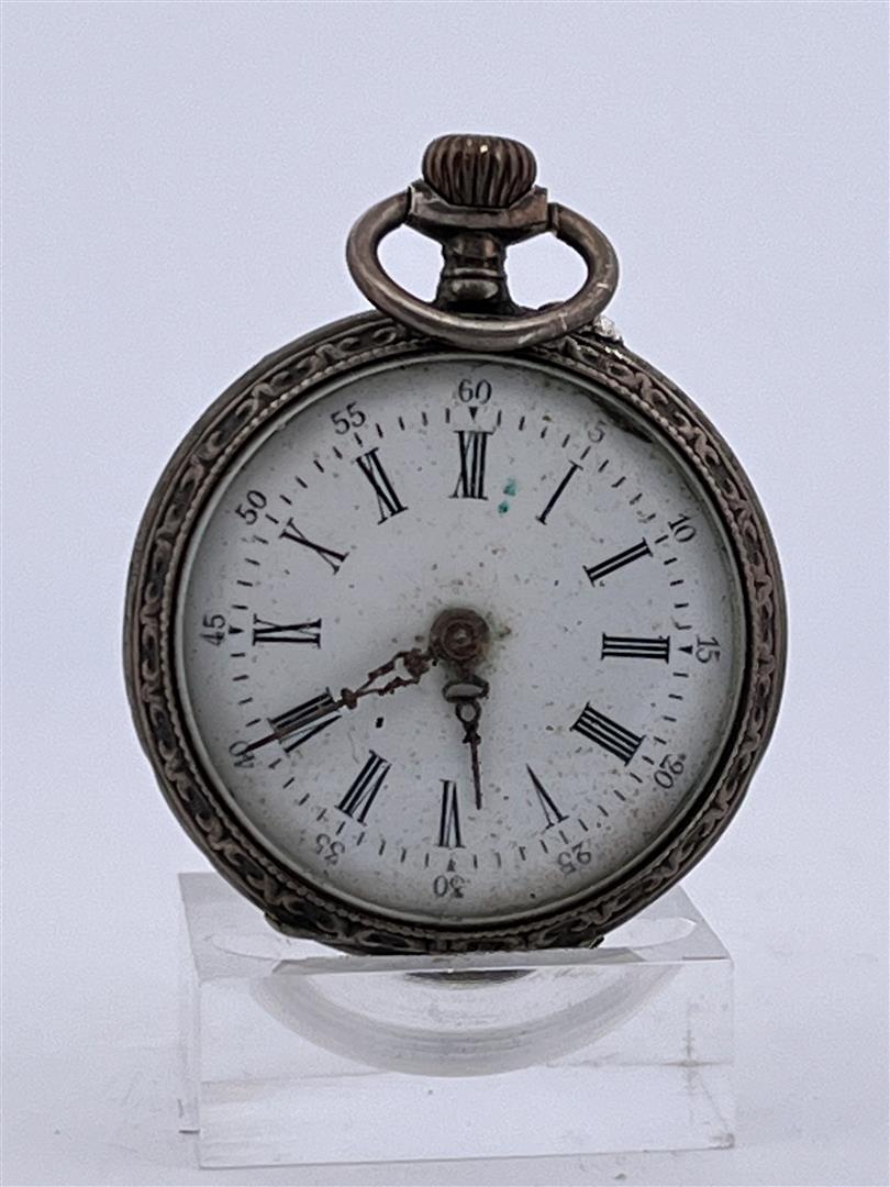 Lot with small steel and silver pocket watches in various conditions - gross weight: 69 grams.