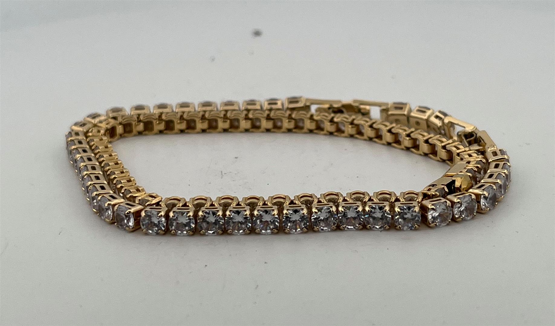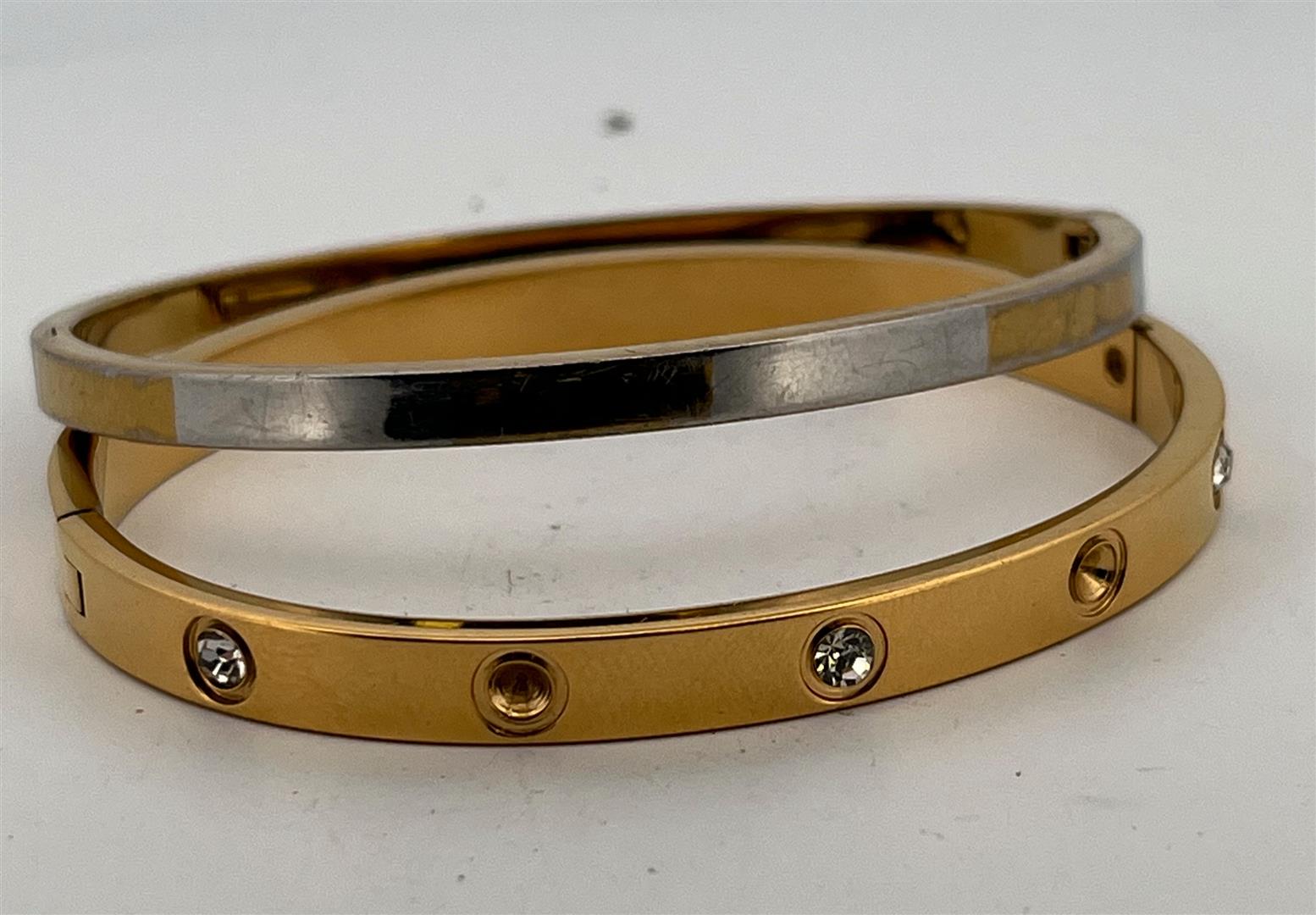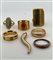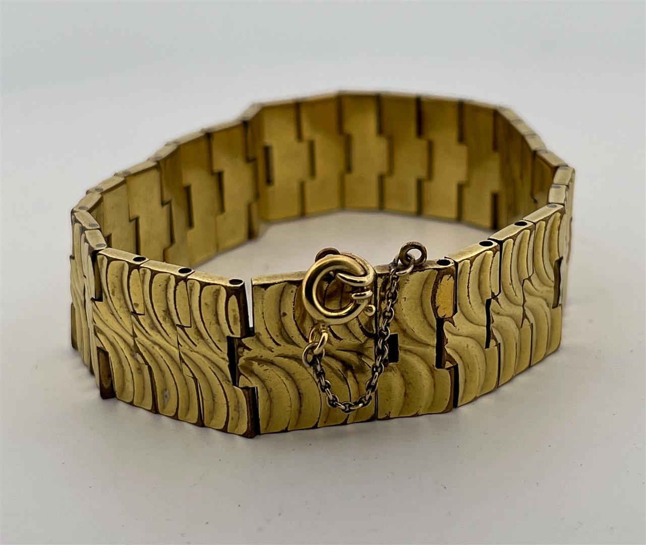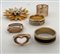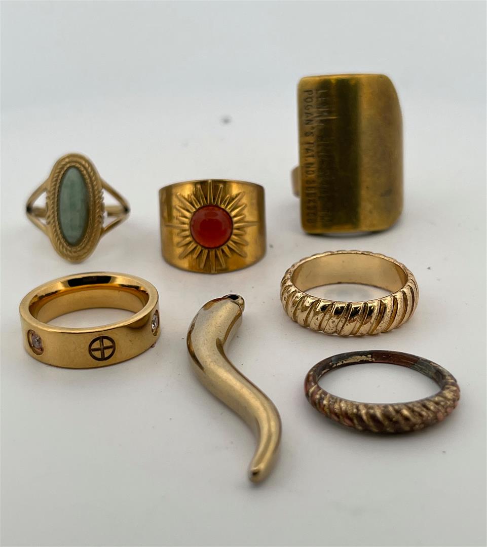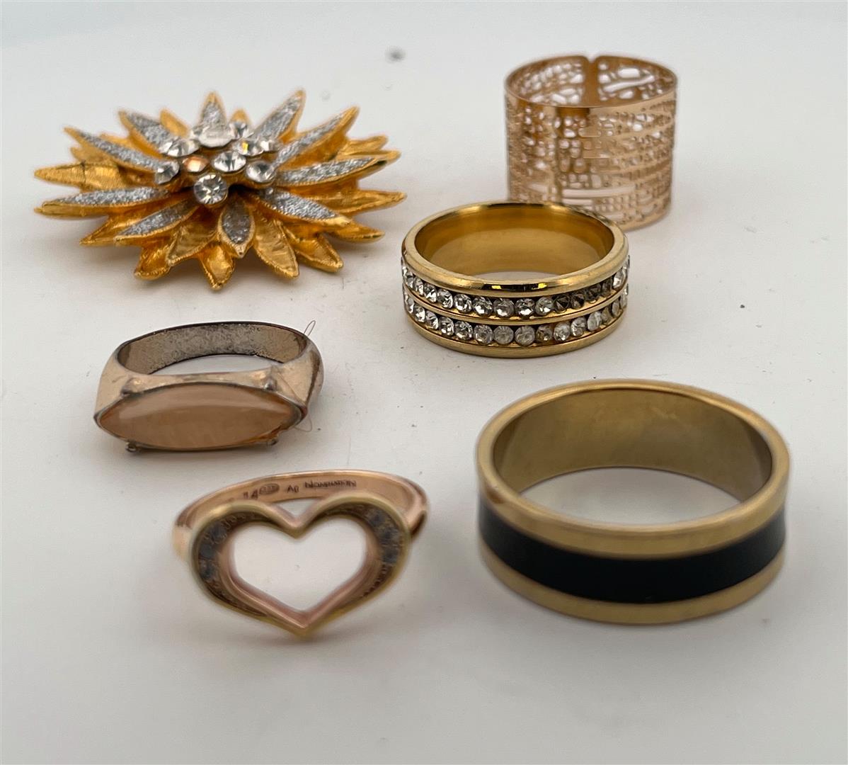 A lot with various gold-colored jewelry bracelets, rings and brooches.