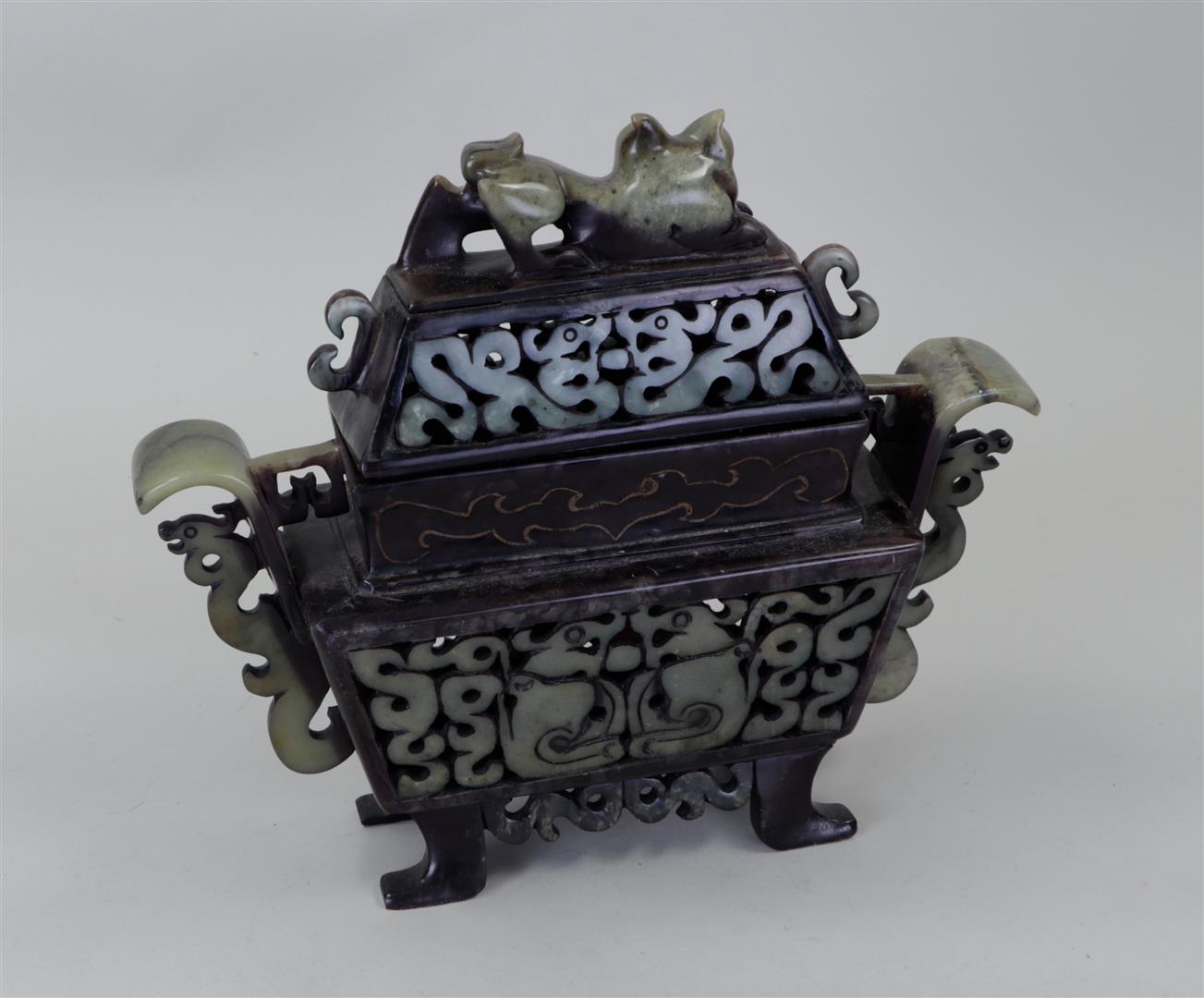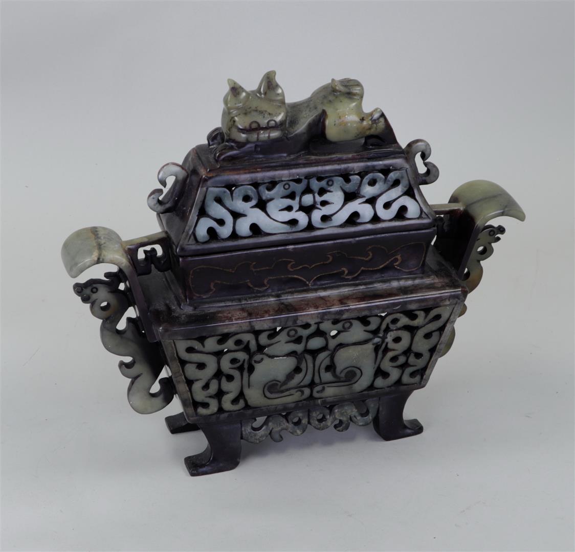 A soapstone incense burner. China, 20th century.30 x 28 cm.