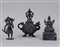 A lot of three bronze sculptures consisting of a Buddha incense burner and figure. 20th century.