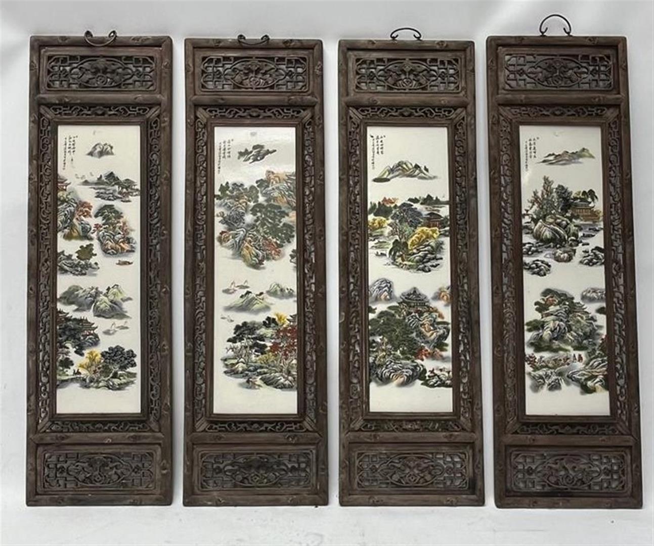 Lot 2033 | A set of four large Chinese porcelain plaques with landscape decoration in...