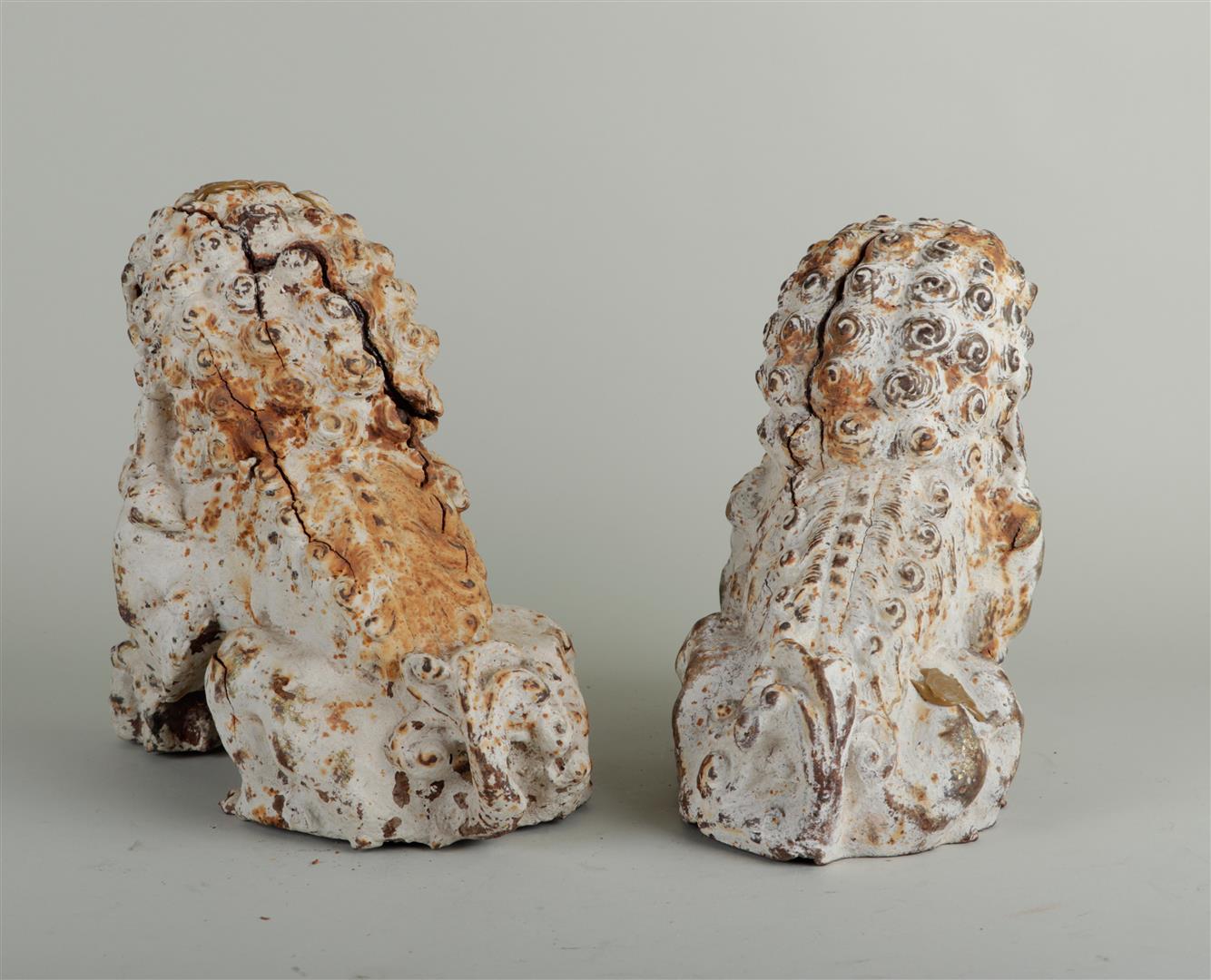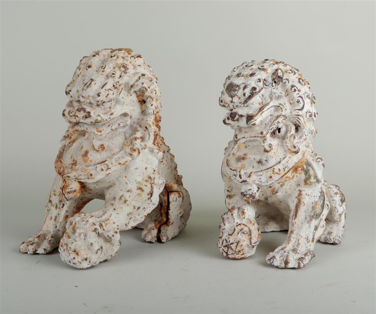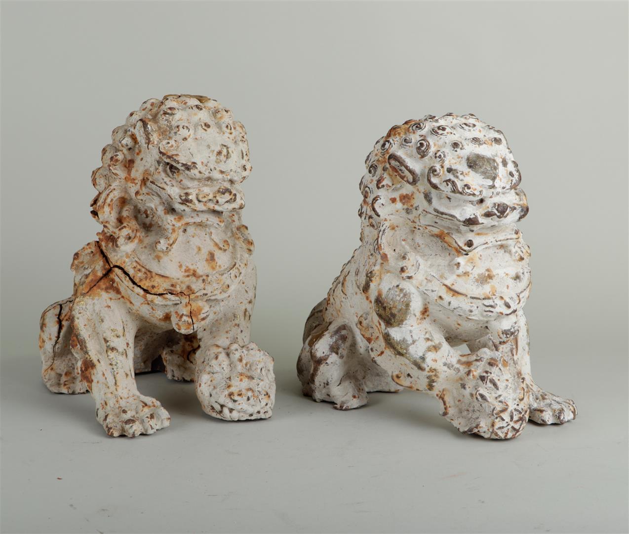 A set of two polychrome cast iron foo dogs, stamped with wax. China, 20th...