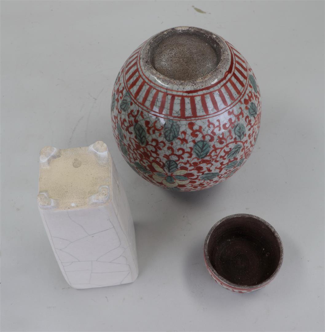 A lot consisting of a painted ginger jar and a crackle vase. China, early...