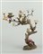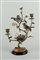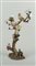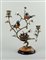 Two bronze candlesticks decorated with various earthenware birds. One bird is...
