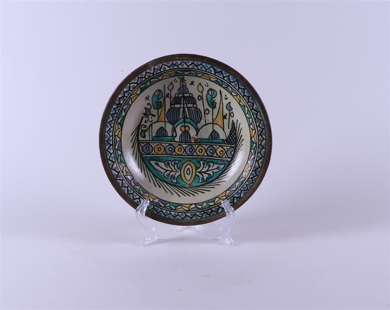 A Moroccan earthenware dish depicting a ship. Fes, Morocco, 19th century. VGL.: image of the bowl exhibited in Amsterdam, Nieuwe Kerk, 19 Dec. 2004, 5000 years of culture.