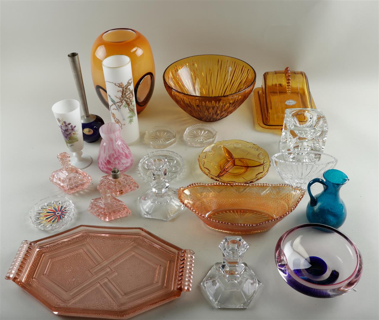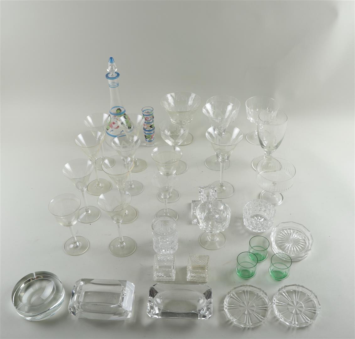 A collection of glassware including crystal glasses.