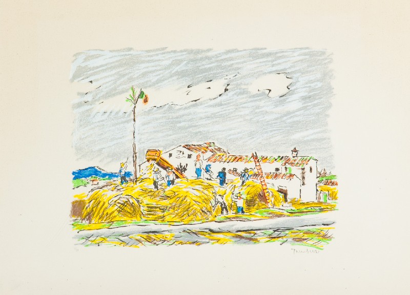 Orfeo Tamburi (Jesi (An) 1910 - Parigi 1994) PAESAGGIO CON FIGURE Litografia su carta, cm. 50x70, es. 47/99 Firma in basso a destra, tiratura in basso a sinistra.