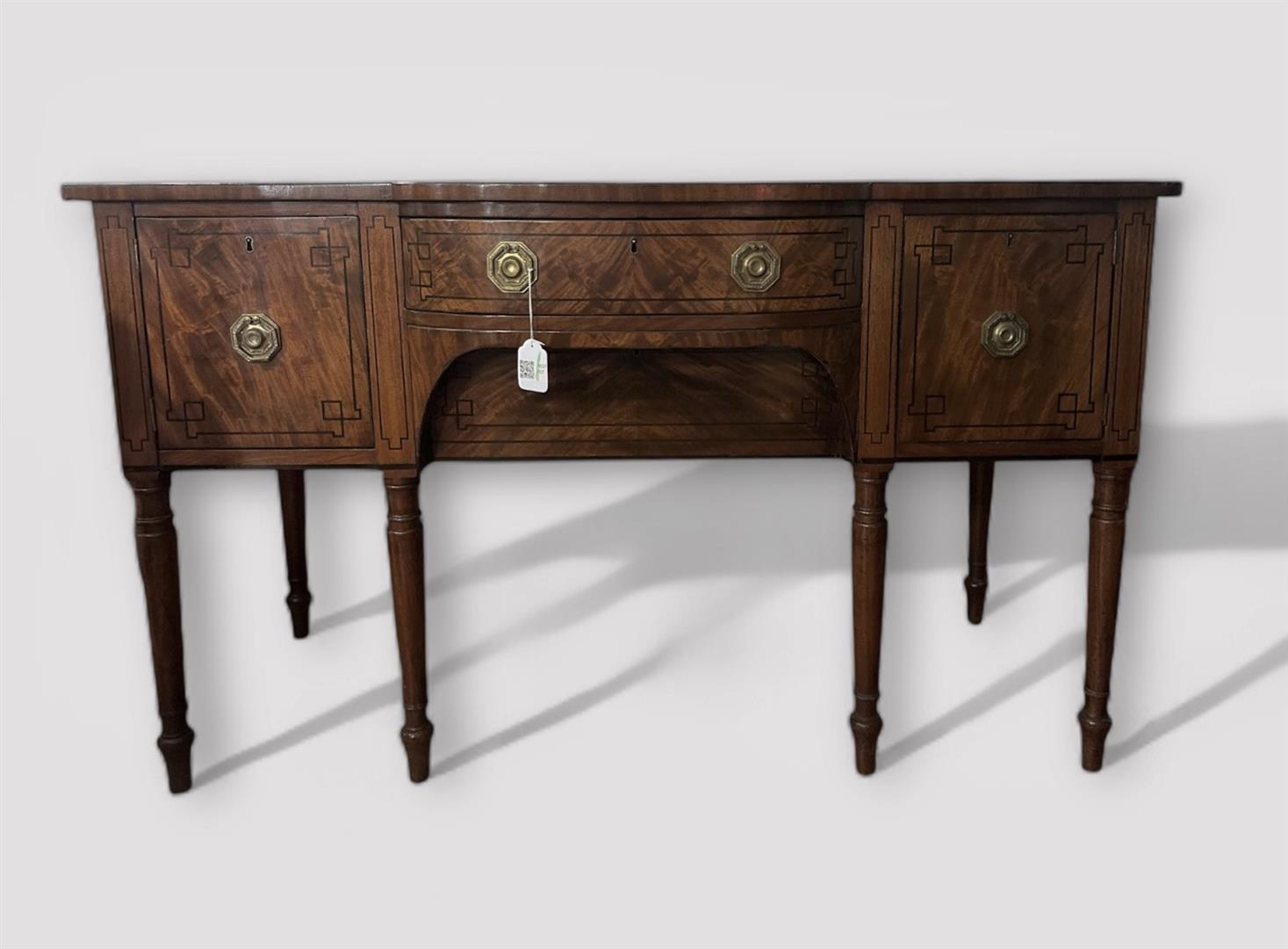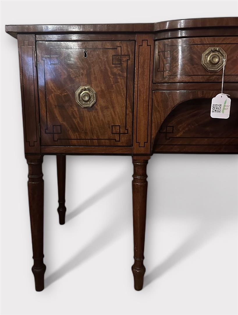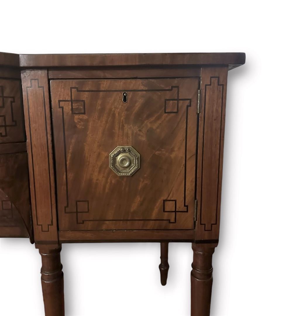 An English mahogany sideboard with intarsia, ca. 1860. NB: The objects displayed on the sideboard are not part of this lot.
