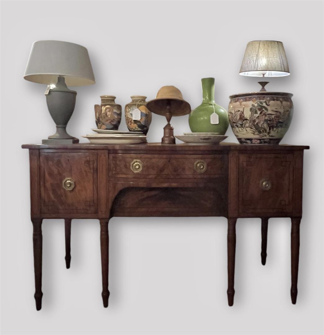 An English mahogany sideboard with intarsia, ca. 1860. NB: The objects...