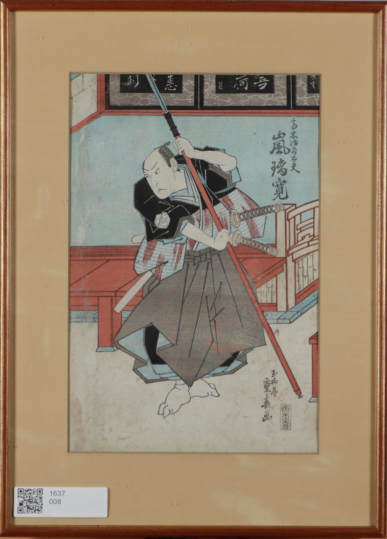 Shigeharu Ryusai (1803 - 1853), Arashi Rikabu - Kabuki, A Japanese samurai, woodblock print in various colors on rice paper, first half 19th century.