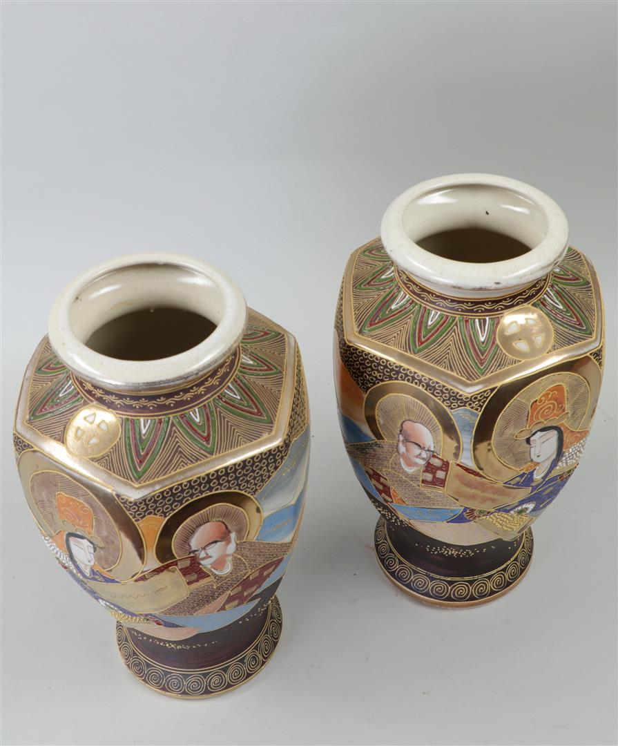 A set of Satsuma earthenware vases decorated with various figures. Japan,...