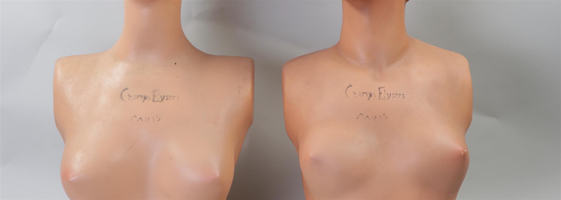 A lot of two vintage plaster busts 'Champs Eysees Paris'. H. 63 cm.