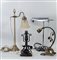 A lot of four various table and desk lamps.