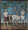 Vincent Droeven (Belgium 20th century), carved and polychrome panel with image of figure with horse, signed lower right.