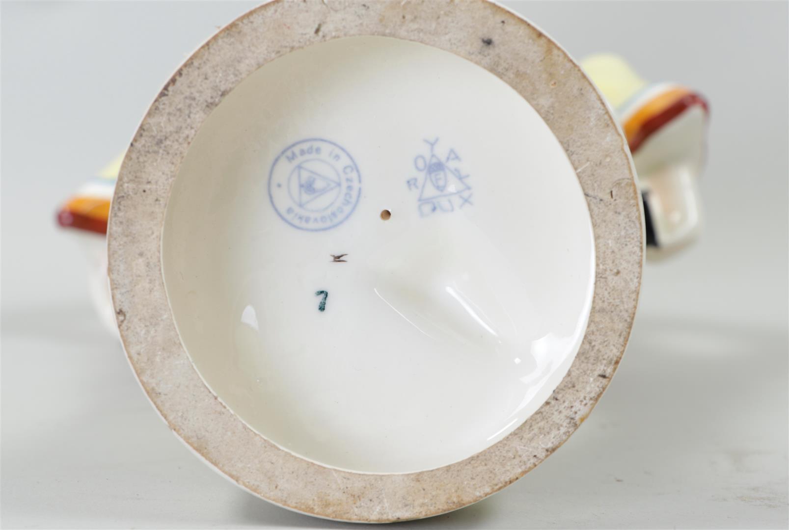 A polychrome earthenware figure of a bagpipe player, marked Royal Dux,...