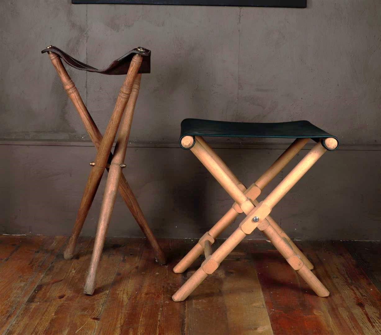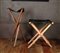 A lot consisting of two folding stools with leather seat. One of them is a hunting stool. 20th century.