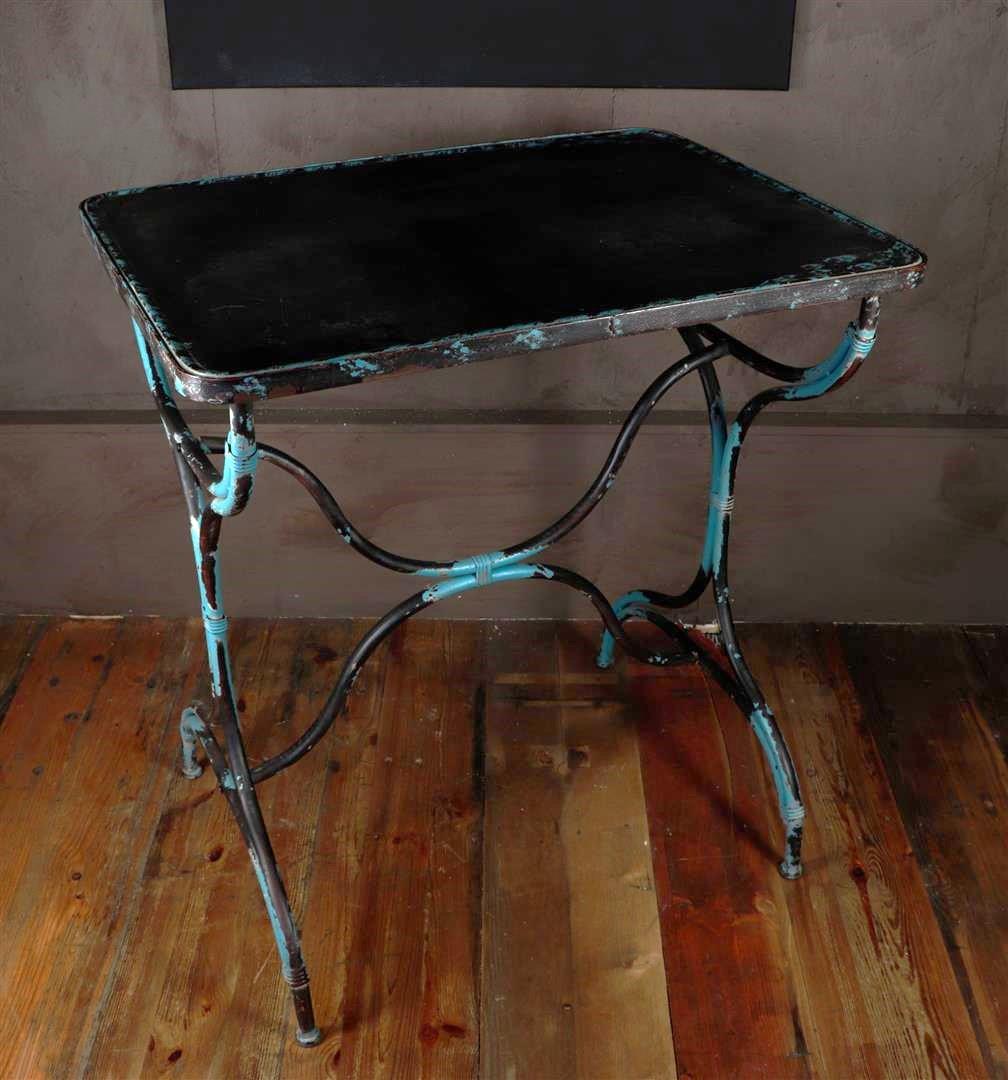An iron garden table or plant table with remains of green polychrome. First half 20th century.