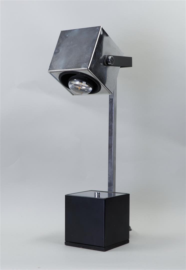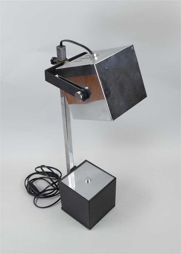 A design desk lamp in chrome and metal. 54 x 17 cm.